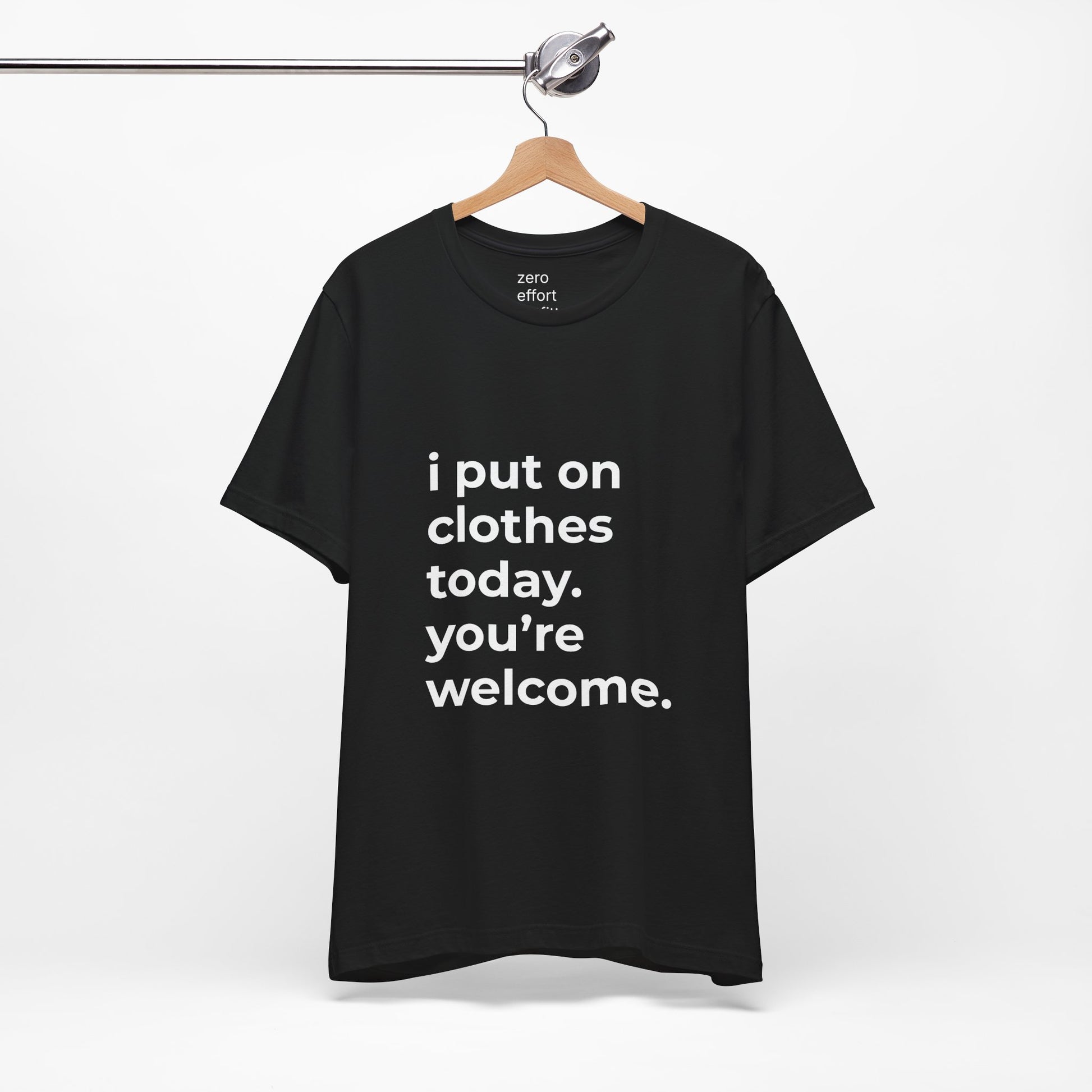 This shirt is for the days when showing up dressed is the biggest accomplishment you can claim. Clean text, soft fabric, zero effort required. Wear it to work, errands, or anywhere you want to set expectations appropriately low.